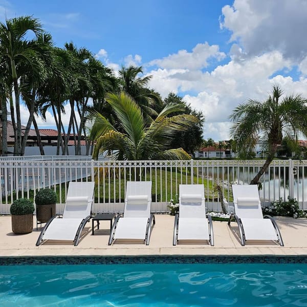 Patio Metal Outdoor Chaise Lounge Set Beach Pool Sunbathing Lawn Lounger Chair Side Table Included (Set of 4)