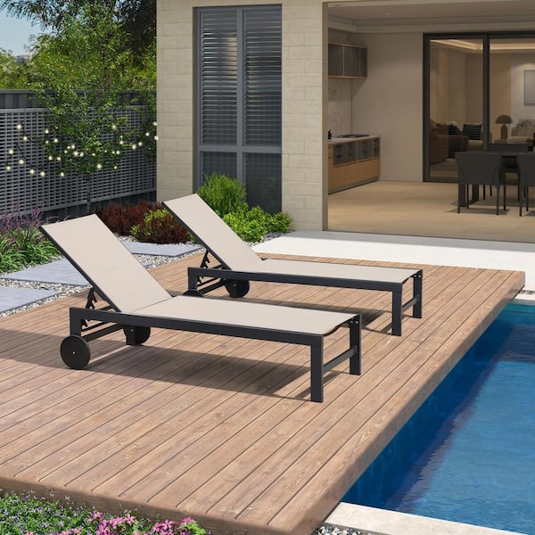 Textilene Fabric and Metal Frame Outdoor Chaise Lounge with Wheels for Patio, Beach, Yard, Pool
