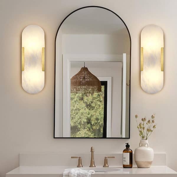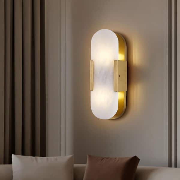 14 in. 2-Light Brass Dimmable Alabaster Wall Sconces, Natural Marble Wall Sconces Wall Lighting for Bedrooms (1-Piece)