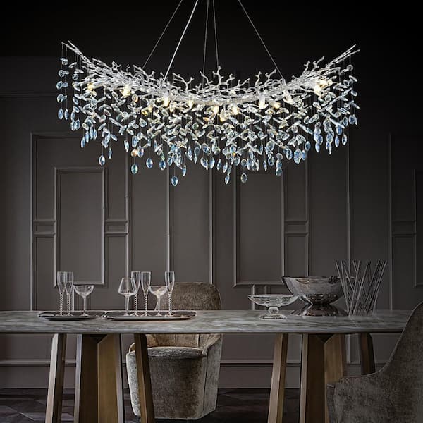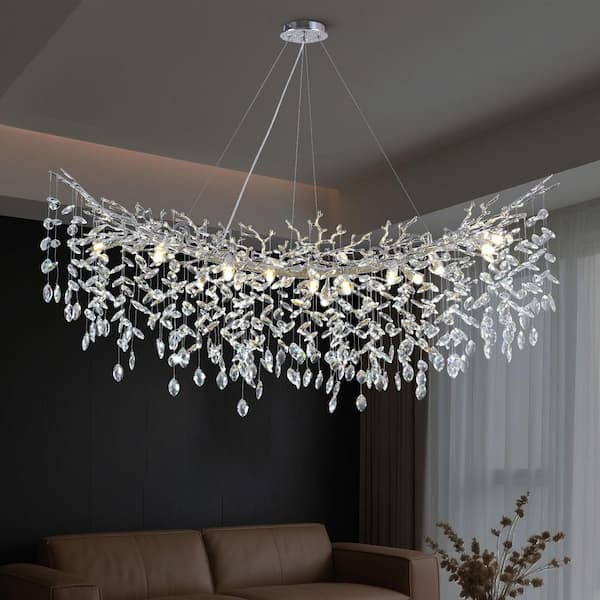 16 lights 55 in. Dimmable Crystal Silver Chandelier, Large Crystal Chandelier, for Living Room, High Ceiling, Foyer