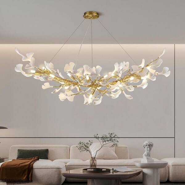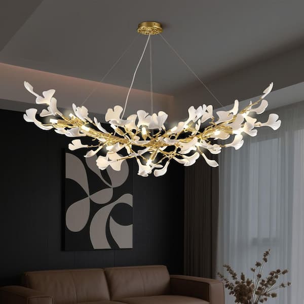 16Light 55 in.Dimmable Tree Branches Ginkgo Chandelier,Gold Modern Chandelier for Dining Room,Living Room,Kitchen Island