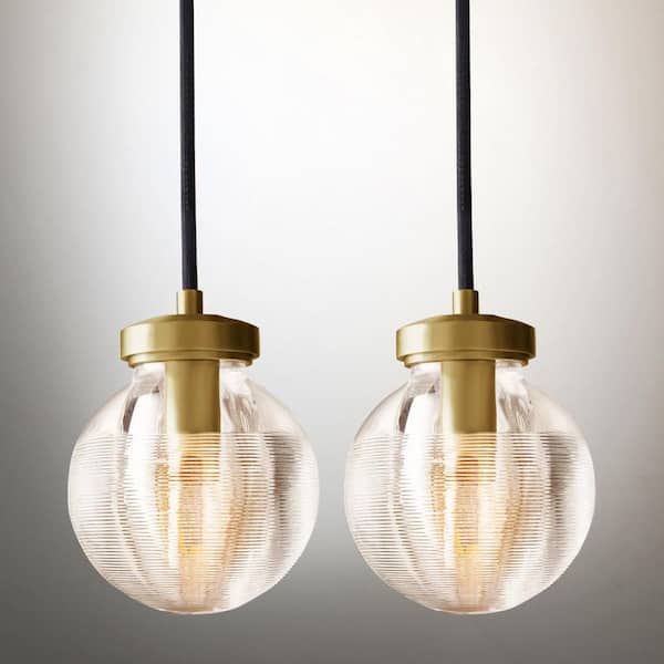 2-Light 5" Globe Brass Glass Pendant Light, Modern, Minimalist Adjustable Pendant Light for Kitchen, Foyer, Hallway