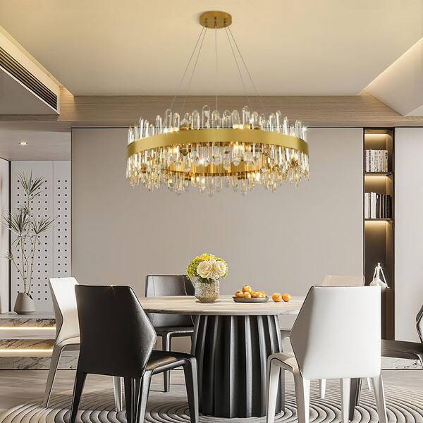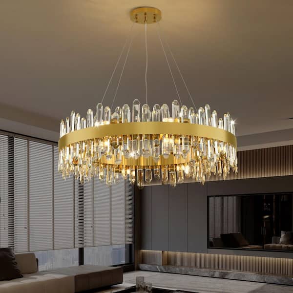 31.49 in. 16-Light Luxury Chandelier, Gold Modern Round Crystal Chandelier, Modern 2-Tiers K9 Crystal Chandelier Foyer
