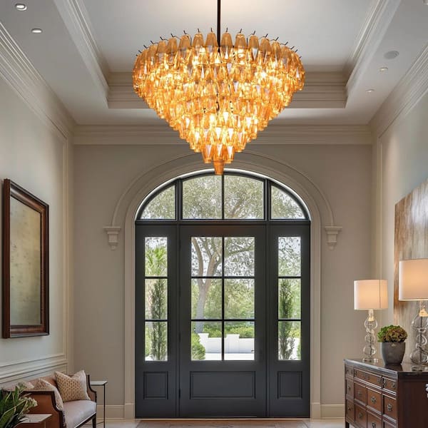 36 in. Large Dining Room Chandelier, 20 Lights Clear Amber Glass Tiered Chandelier, Black Round Chandelier, for Bedroom