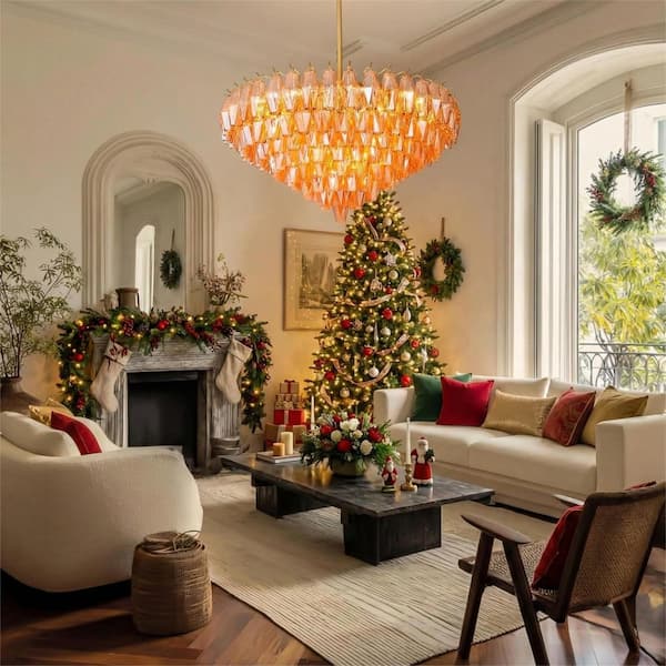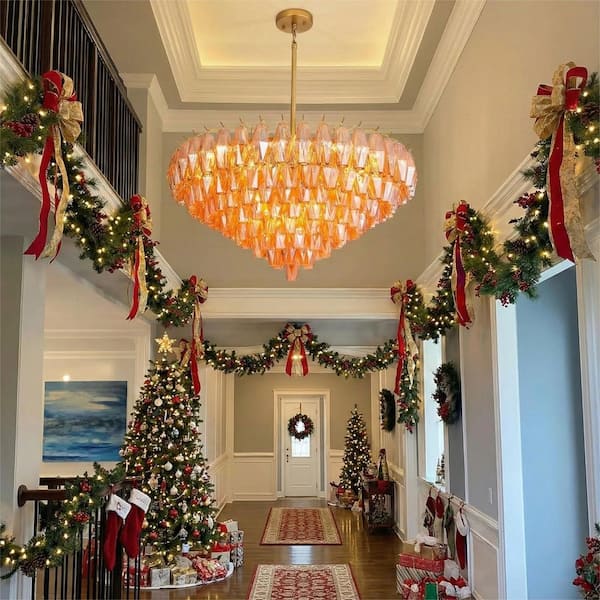 36 in. Large Dining Room Chandelier, 20 Lights Clear Amber Glass Tiered Chandelier, Gold Round Chandelier, for Bedroom
