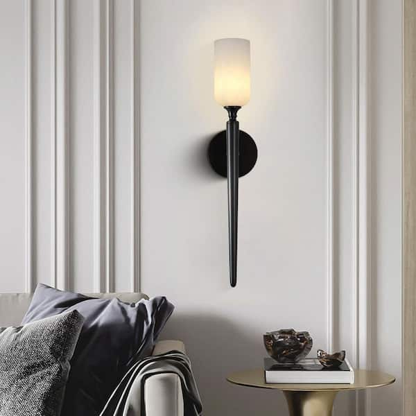 5 in. 1-light Vintage Alabaster Wall Sconce, Modern Black Bathroom Sconces, Marble Sconces Wall Lighting for Foyer