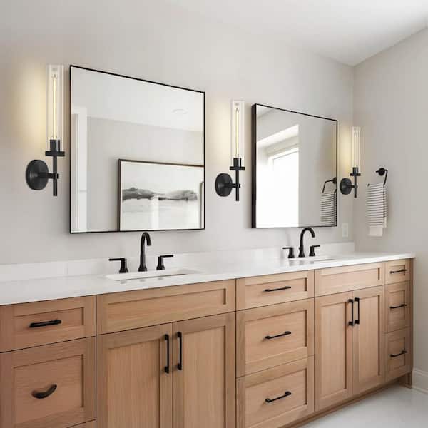 6 in. 1-Light Black Glass Dimmable LED Wall Sconce, Modern Linear Wall Light for Living Room, Bedroom, Hallway (2PCS)