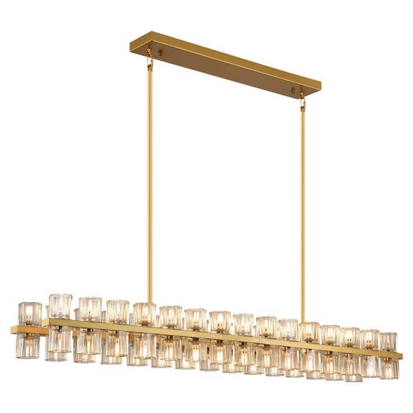 60-Light 54 in. Gold Crystal Chandelier Dimmable LED Kitchen Island Rectangle Bedrooms, Living Rooms (Includes Bulbs)