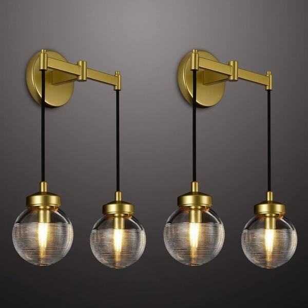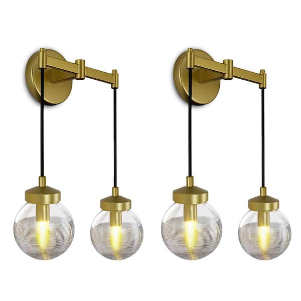 9 in. Brass Glass 2-Lights Wall Sconce, Modern Globe Bathroom Wall Light, Dining Room, Stairwell and Hallway (2PCS)