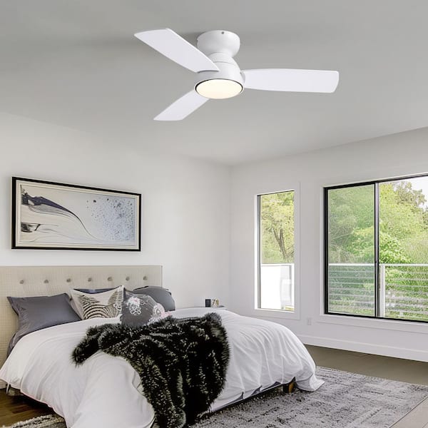 32 in. Smart Indoor Modern White Low Profile Flush Mount Ceiling Fan with Integrated Dimmable LED with Remote Included