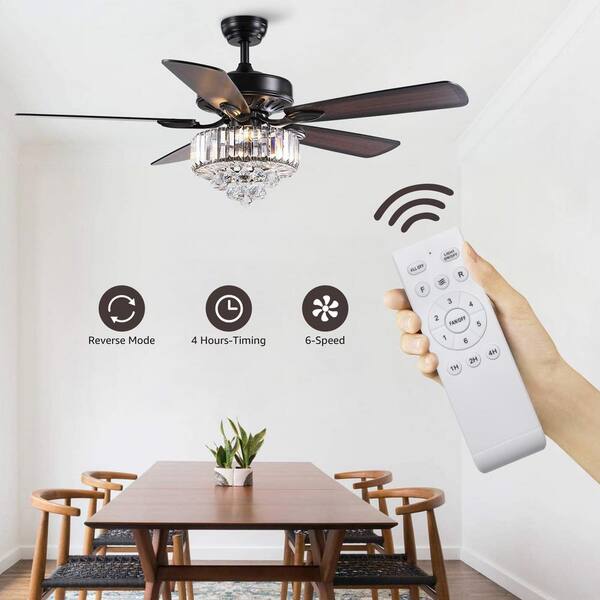 52 in. Smart Indoor Black Crystal Chandelier Ceiling Fan with Dimmable Intergrated Led