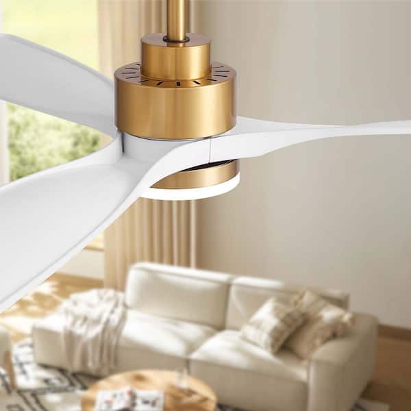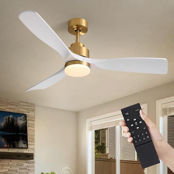 52 in. Smart Indoor White and Gold Low Profile Ceiling Fan with Dimmable Lights with Remote Included