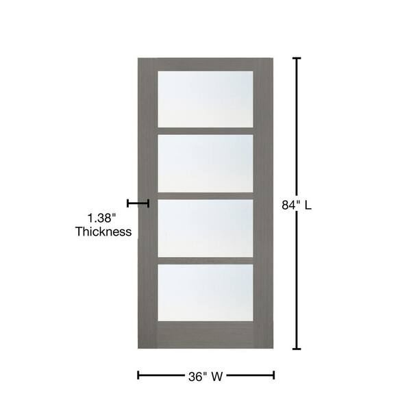 36 in. x 84 in. 4-Lite Driftwood Clear Coat Wood Interior Barn Door Slab