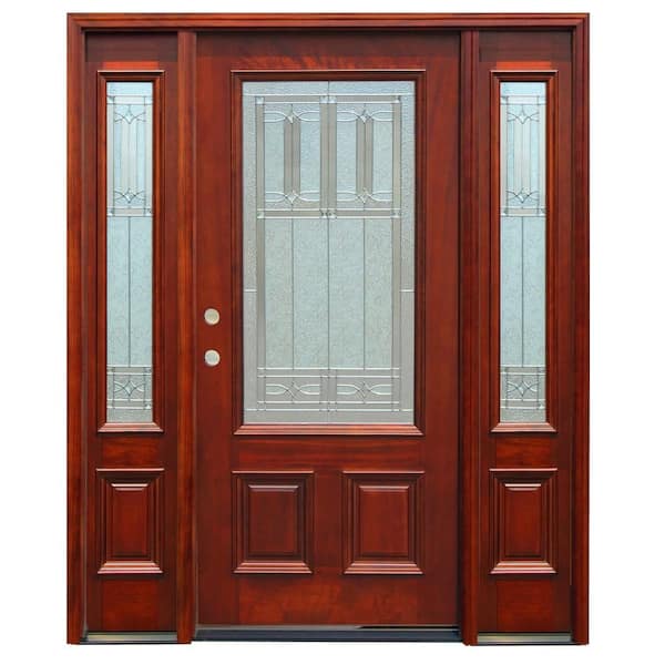 68 in. x 80 in. Traditional 3/4 Lite Stained Mahogany Wood Prehung Front Door w/ 6 in. Wall Series and 12 in. Sidelites