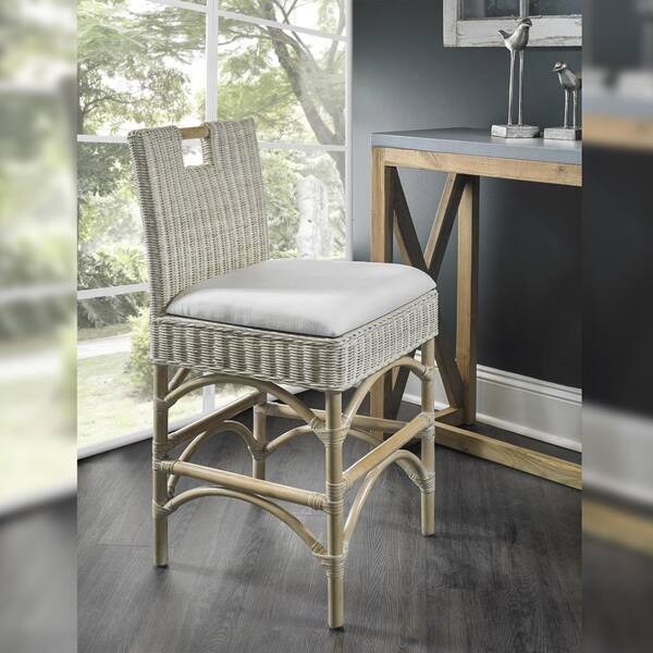 Malio 42.91 in.Whitewash High Back Rattan Frame Bar Height (28-33 in.) Bar Stool with Fabric Seat