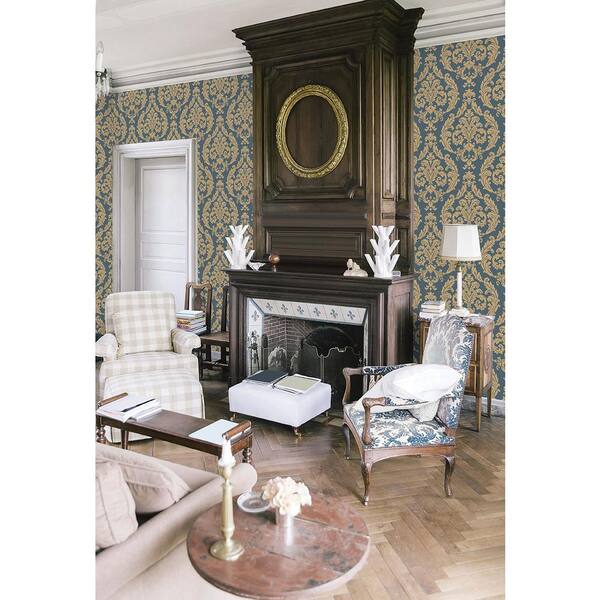Palazzo 2 Collection Silver Silk Damask Vinyl on Non-Woven Non-Pasted Wallpaper Sample