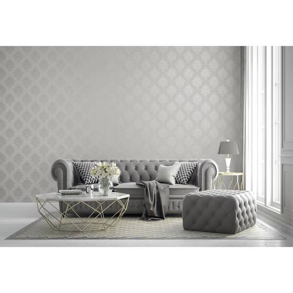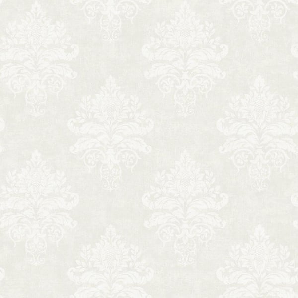 Palazzo 2 Collection White Medallion Damask Vinyl on Non-Woven Non-Pasted Wallpaper Roll