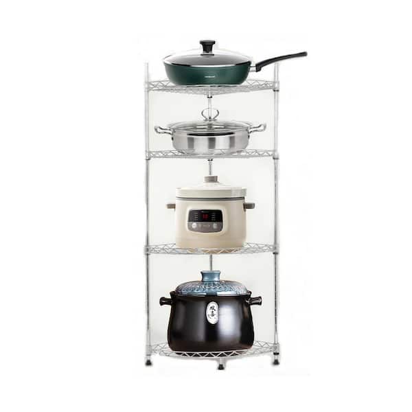 Palomo 11.81 in. W x 11.81 in. D x 35.43 in. H Silver Metal Freestanding 4-Layer Bathroom Shelf