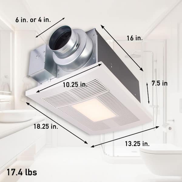 WhisperWarm DC 50-80-110 CFM Ceiling Exhaust Fan with LED Light/Night Light and Heater