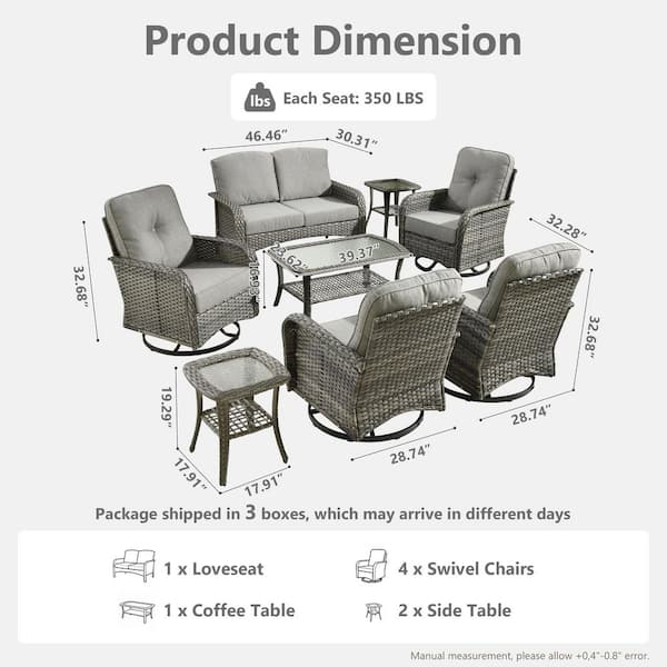 Paradise 8 Pieces Wicker Outdoor Patio and Swivel Rocking Chairs with Dark Gray Cushions