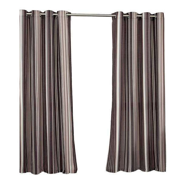 Semi-Opaque Windley Key Stripe Neutral Polyester Grommet Curtain - 52 in. W x 84 in. L