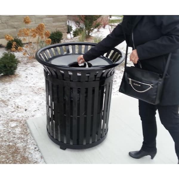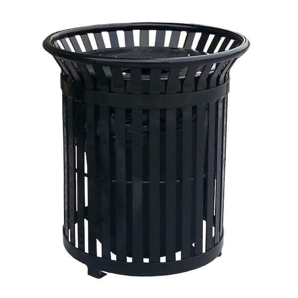 34 Gal. Black Steel Outdoor Trash Can with Steel Lid and Plastic Liner