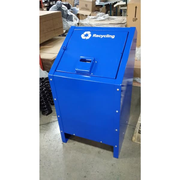 34 Gal. Metal Animal Proof Trash Can in Blue