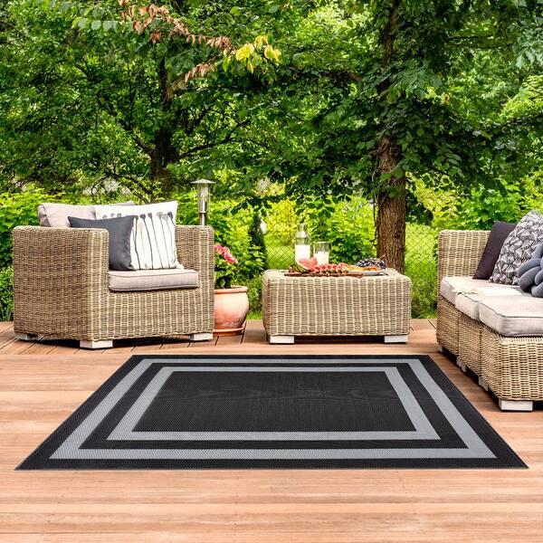 Paris Black and Grey 8 ft. x 10 ft. Geometric Polypropylene Indoor/Outdoor Rug