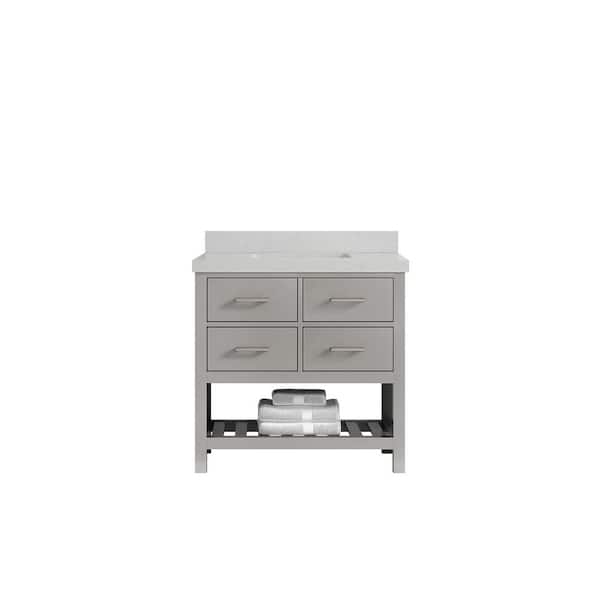 Parker 36 in. W x 22 in. D x 36 in. H Center Sink Bath Vanity in Elephant Gray with 2 in. Carrara Quartz Top