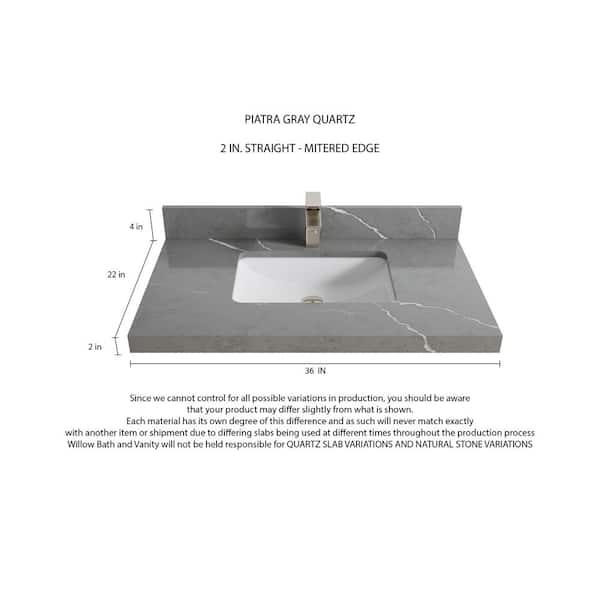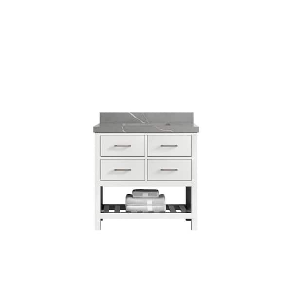 Parker 36 in. W x 22 in. D x 36 in. H Center Sink Bath Vanity in White with 2 in. Piatra Quartz Top