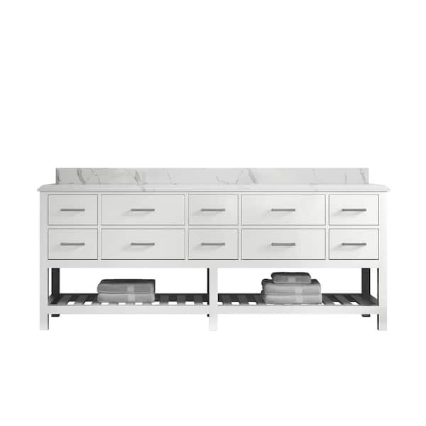 Parker 84 in. W x 22 in. D x 36 in. H Double Sink Bath Vanity in White with Cove Edge Calacatta Quartz Top