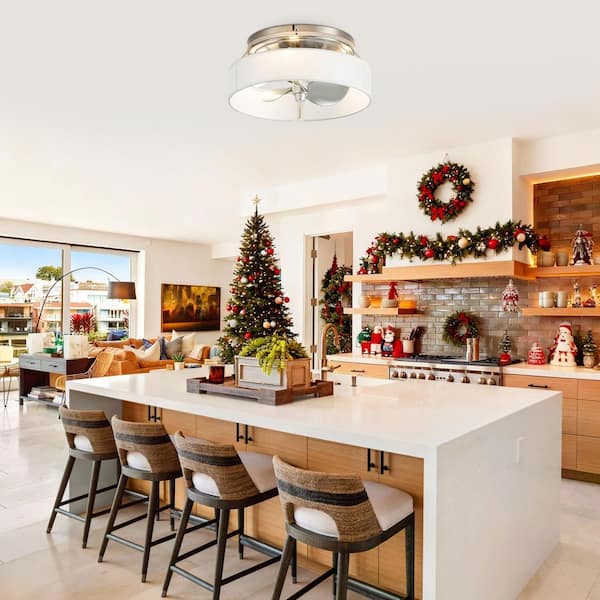 12.6 in. Indoor Satin Nickel Caged Flush Mount Low Profile Ceiling Fan with Light and Remote Control