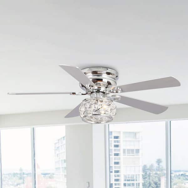 48 in. Indoor Modern Chrome 2-Light Crystal Flush Mount Ceiling Fan with Light Kit and Remote Control