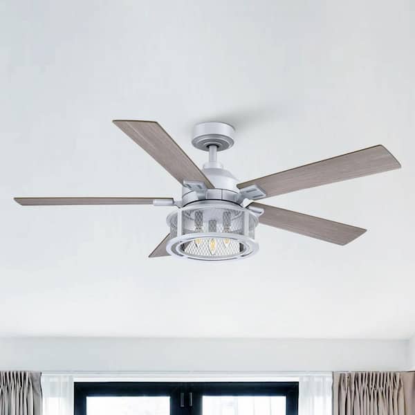52 in. Indoors Mesh Metal Reversible Blades Silver Ceiling Fan with Light Kit and Remote Control