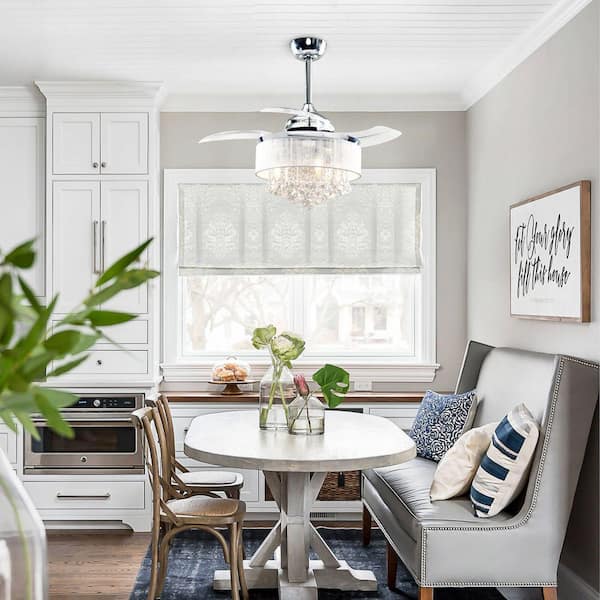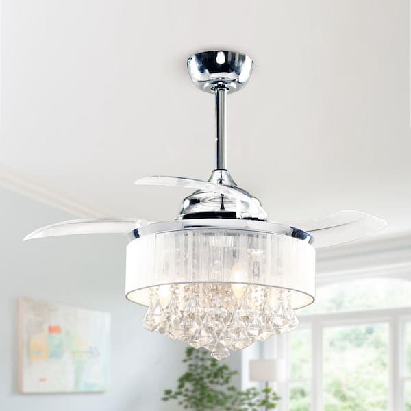 Broxburne 36 in. Indoor Chrome Downrod Mount Retractable Crystal Ceiling Fan Chandelier with Light Kit and Remote
