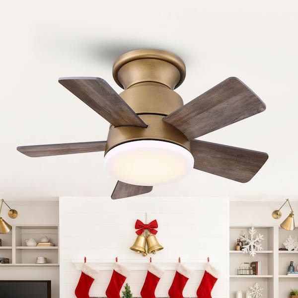Evaluna 24 in. Integrated LED Indoor Natural Brass Gold Flush Mount Ceiling Fan with Light and Remote Control