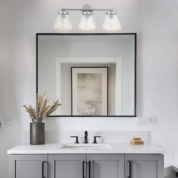 Gleam 30.3 in. 3-Light Brushed Nickel Modern Farmhouse Vanity Light with Clear Glass Shades