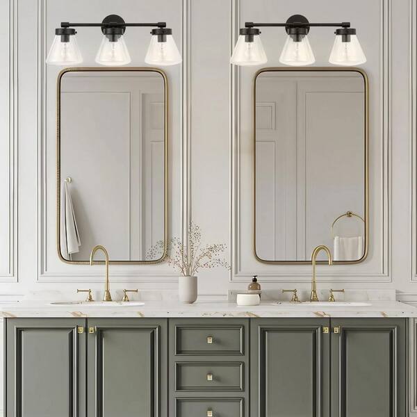 Gleam 30.3 in. 3-Light Matte Black Modern Vanity Light with Clear Glass Shades
