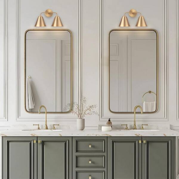 Loft Lantern 16 in. 2-Light Gold Modern Bathroom Vanity Light with Metal Cone Shades