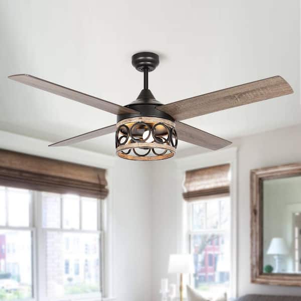 Mirelle 52 in. Indoor Black Down Rod Mounting Farmhouse Ceiling Fan with Light Kit and Remote