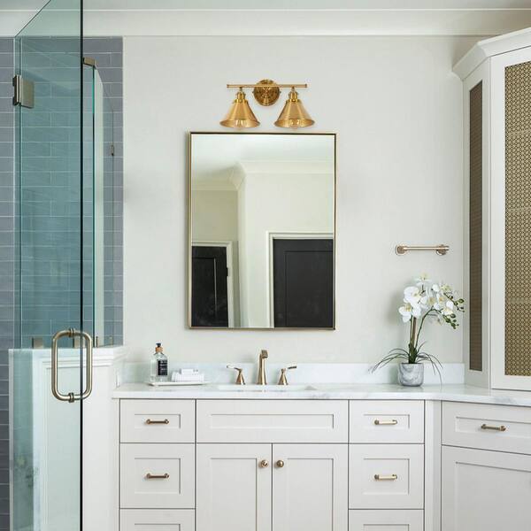 Oakpark 16 in. 2-Light Brass Gold Wall Sconce Vanity Light