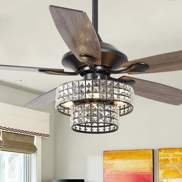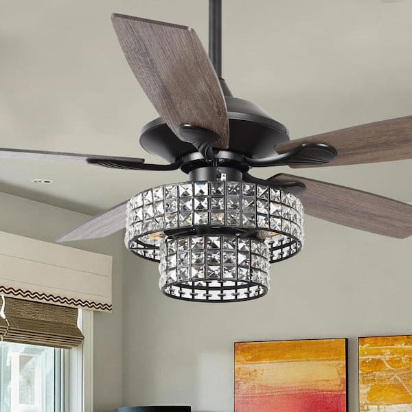 Rafferty 52 in. Modern Indoor Black Dual Crystal Ceiling Fan with Light Kit and Remote Control