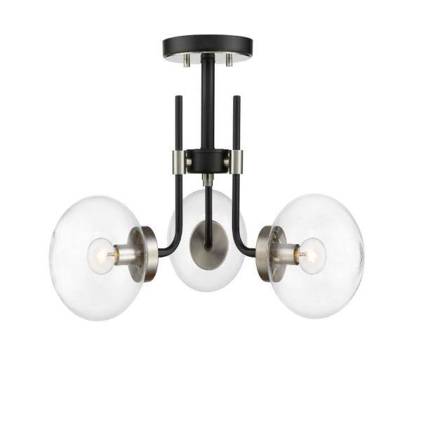 Parsons 22 in. 3-Light Matte Black and Brushed Nickel Semi Flush Mount with Clear Glass Shade