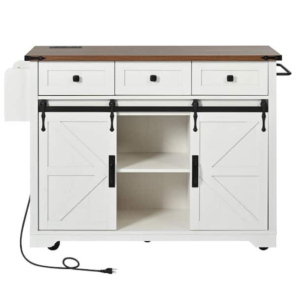 Particle Board Kitchen Cart with 2-Sliding Door Cabinet, Spice Rack, Drop Leaf and Towel Rack