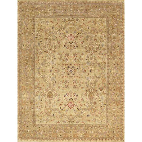 Tabriz Beige 12 ft. x 15 ft. Floral Lamb's Wool Area Rug