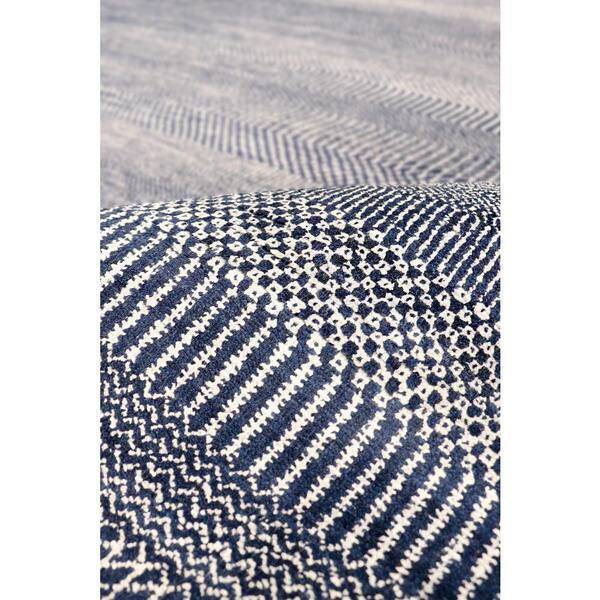 Transitional Navy 4 ft. x 6 ft. Striped Bamboo Silk & Wool Area Rug