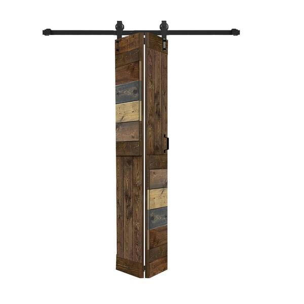 Patented Product S Style 24 in. x 84 in. Multicolor Solid Wood Bi-Fold Sliding Barn Door Hardware Kit-Assembly Needed