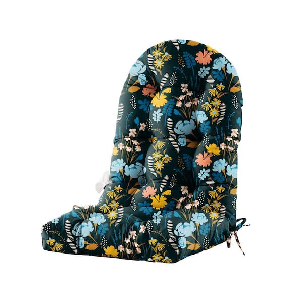 Patio Chair Cushion for Adirondack High Back Tufted Seat Chair Cushion Outdoor 48 in. x 21 in. x 4 in. Black Flowers