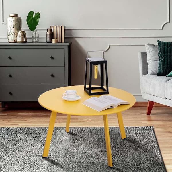 Patio Coffee Table, Metal Steel Outdoor Round Table Weather Resistant Anti-Rust Outdoor Table(Yellow)