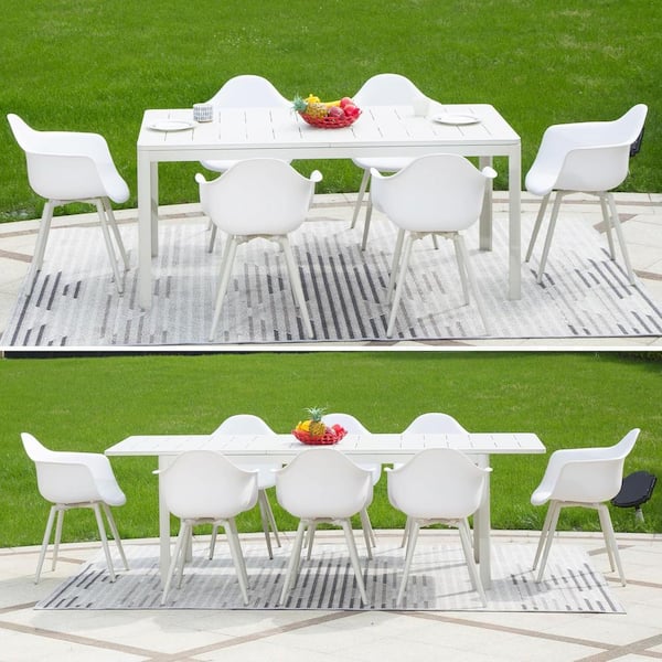 Patio Dining Expandable Table, Metal Aluminum Outdoor Table for 6-8 Person Rectangular Table for Porch Lawn Garden White